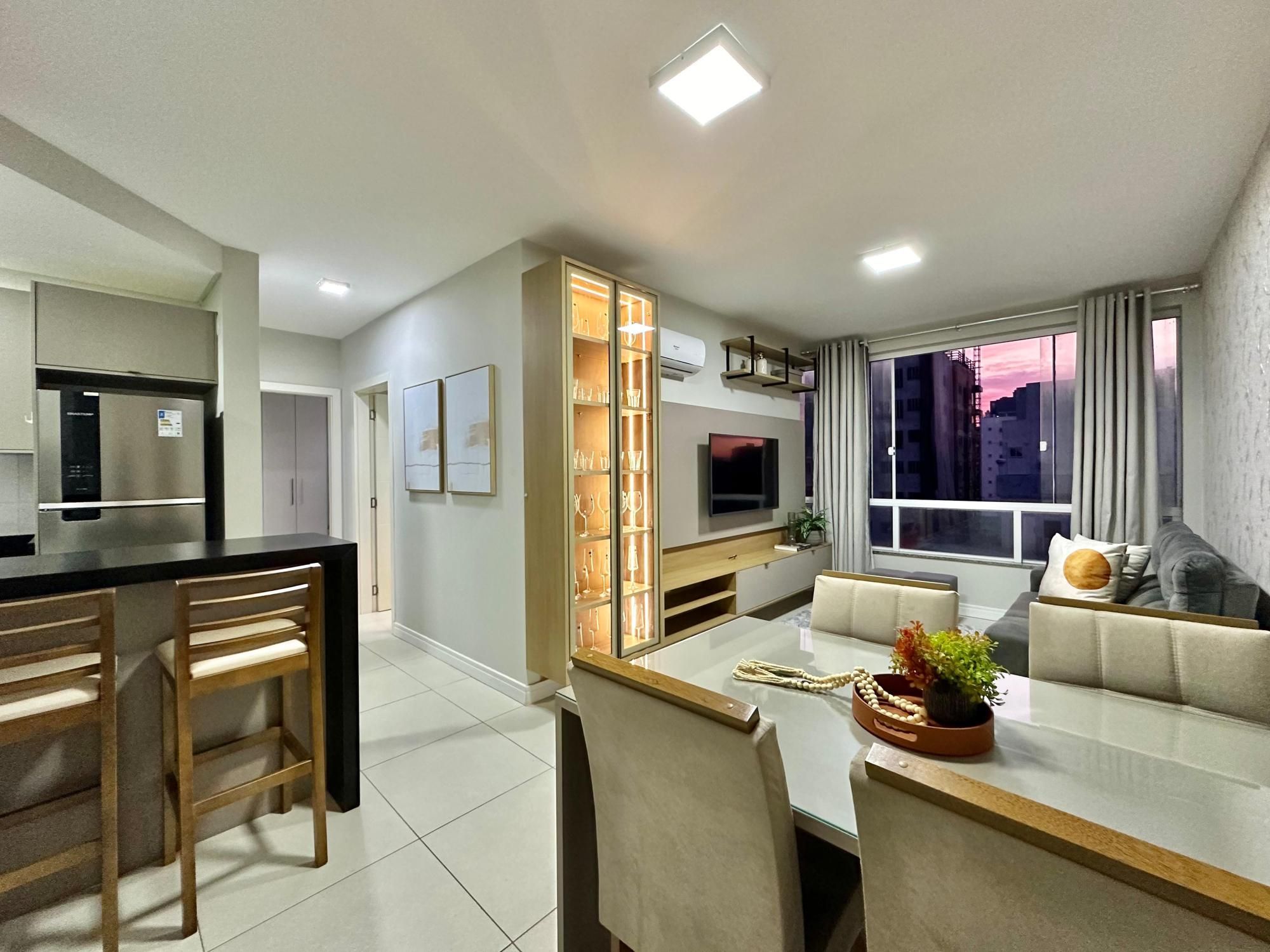 APARTAMENTO À VENDA MOBILIADO E DECORADO 02 Dormitórios (01 suíte) Banho social Living Integrado Sacada de frente Último andar Mobiliado/Decorado Climatizado 91, 80 M² 01 Box térreo