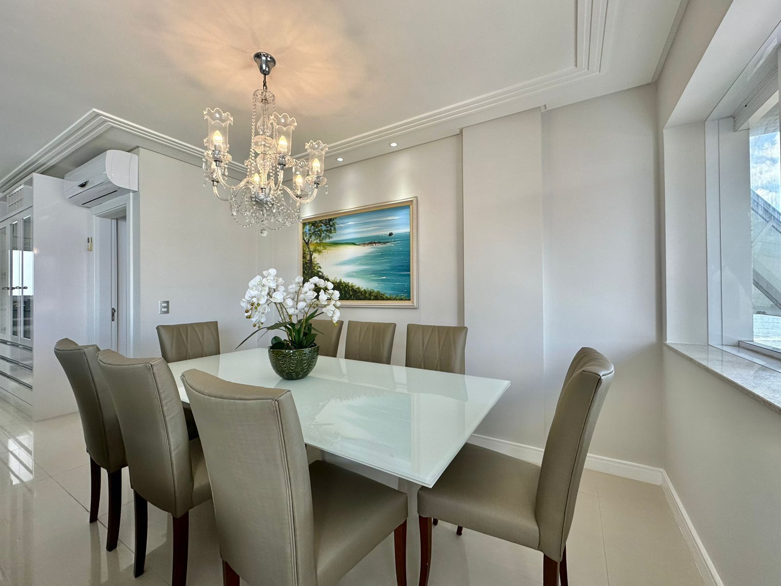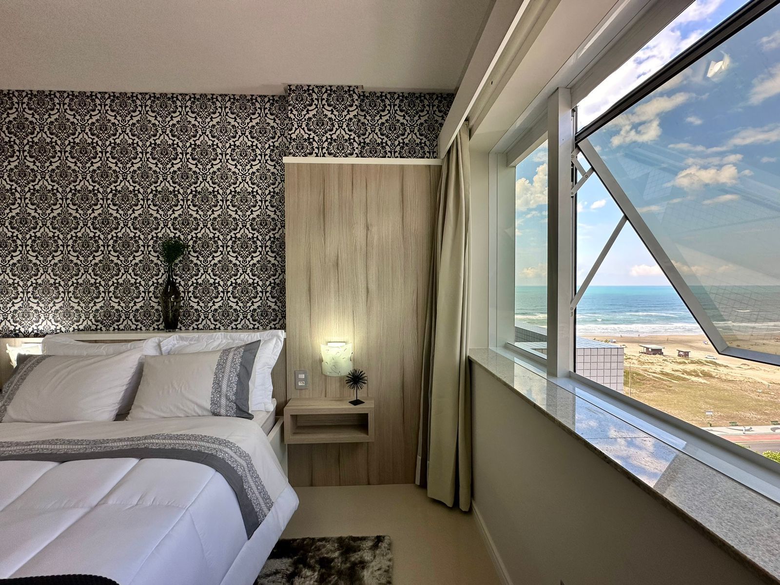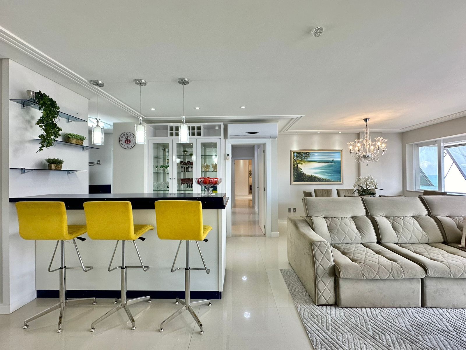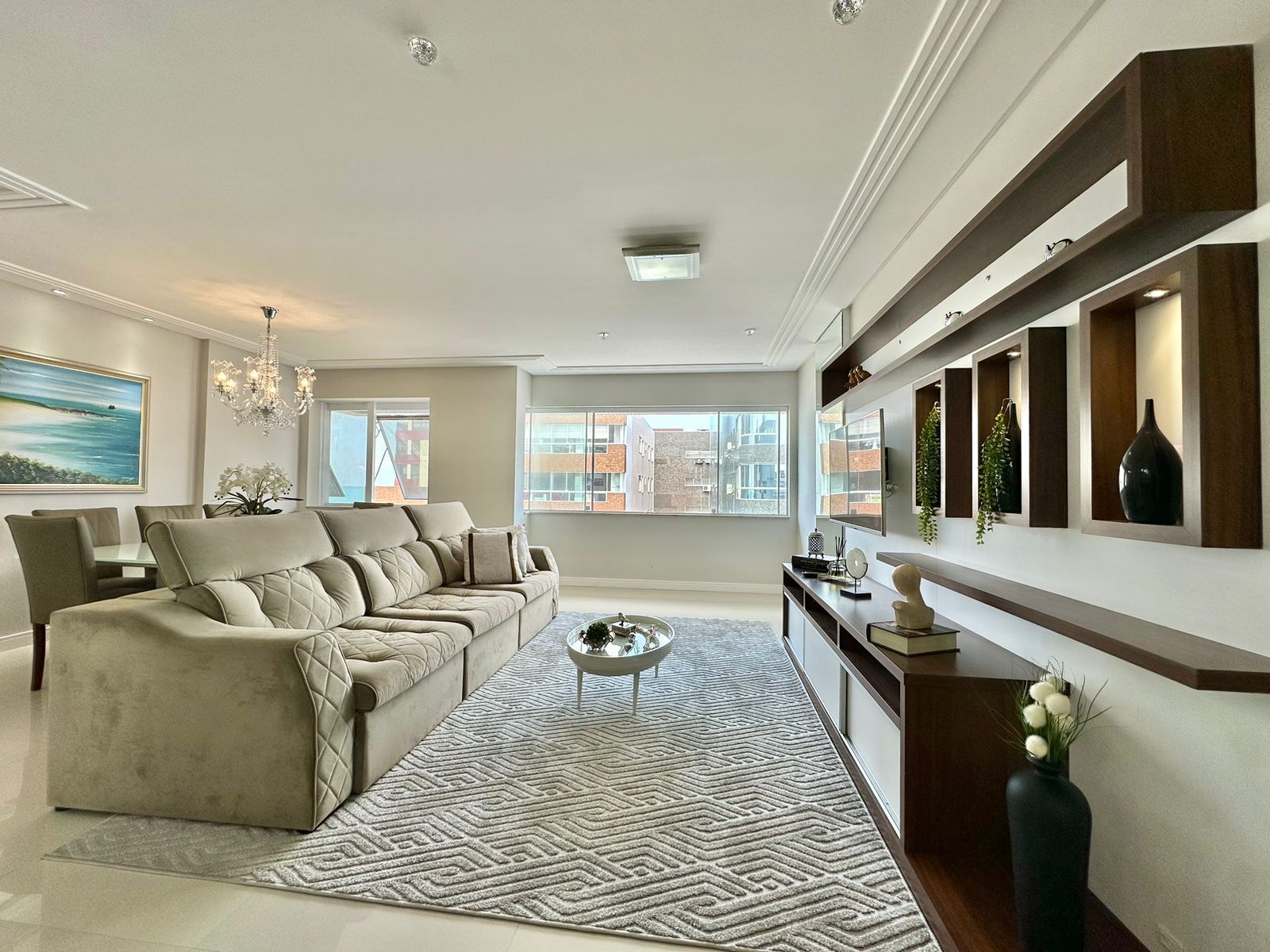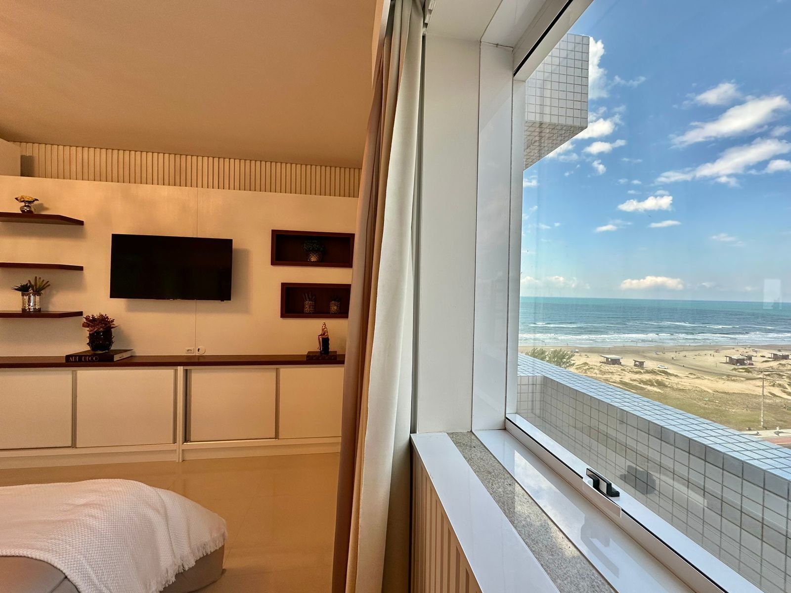 APARTAMENTO À VENDA COM VISTA PARA O MAR?03 dormitórios (1 suíte Master com banheira)?Mobiliado e Decorado?Banho Social?Living Amplo?Churrasqueira Rotativa?Área de serviço separada?Pronto para uso?175, 01 M² área total?02 Box + 2 Depósitos