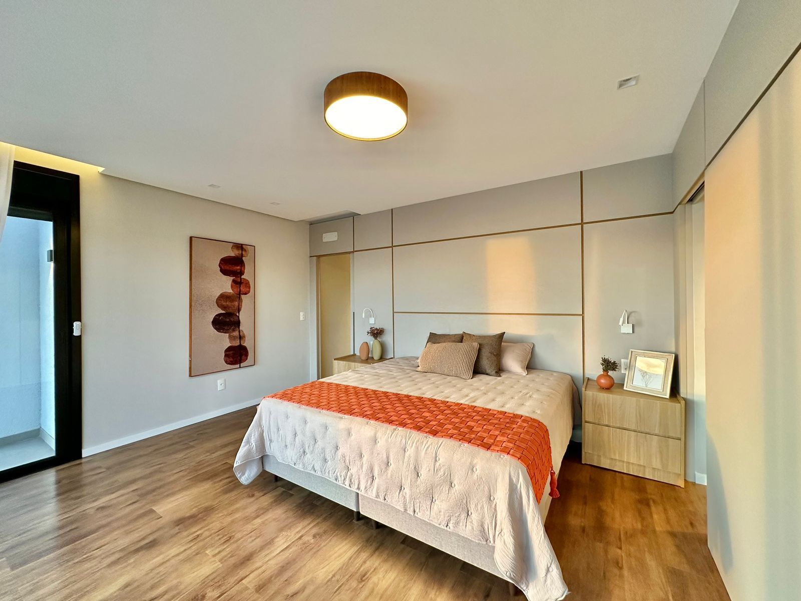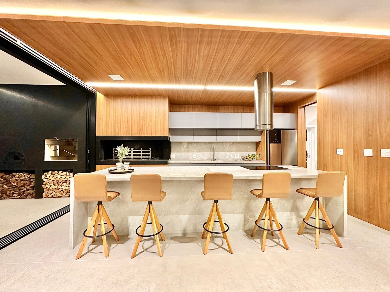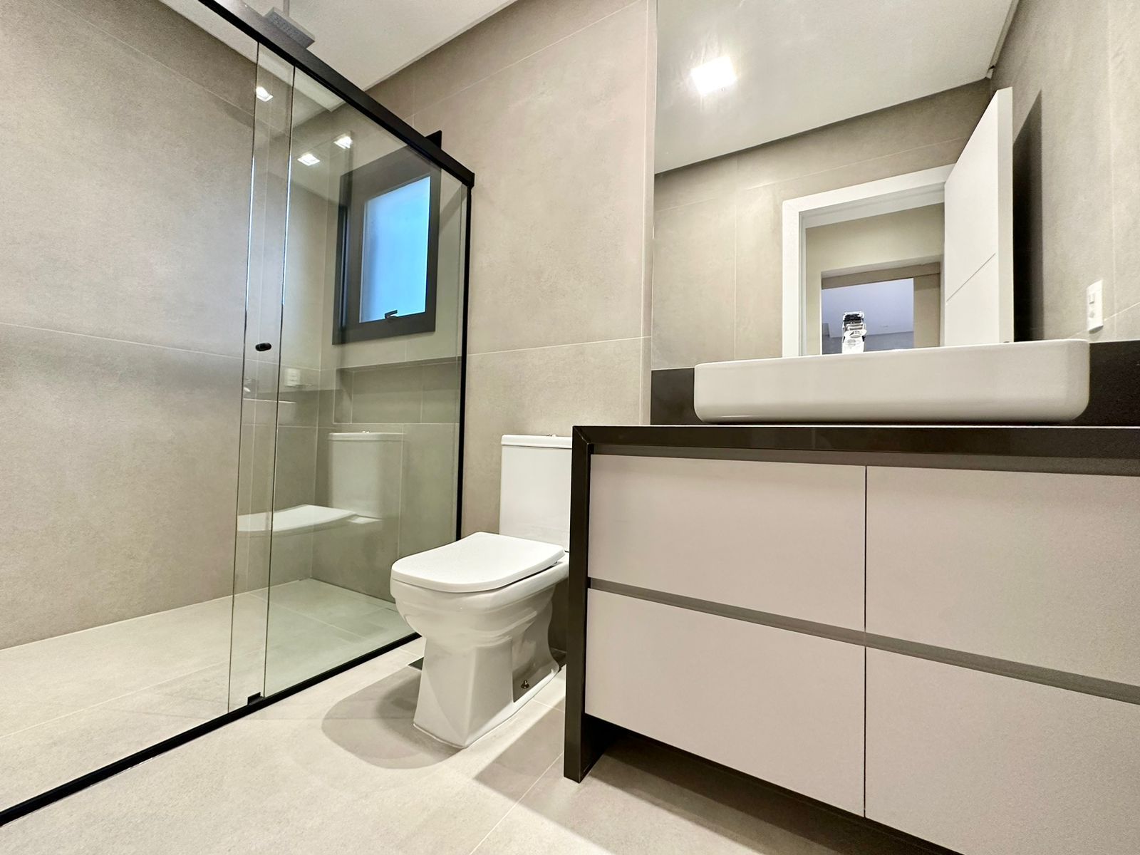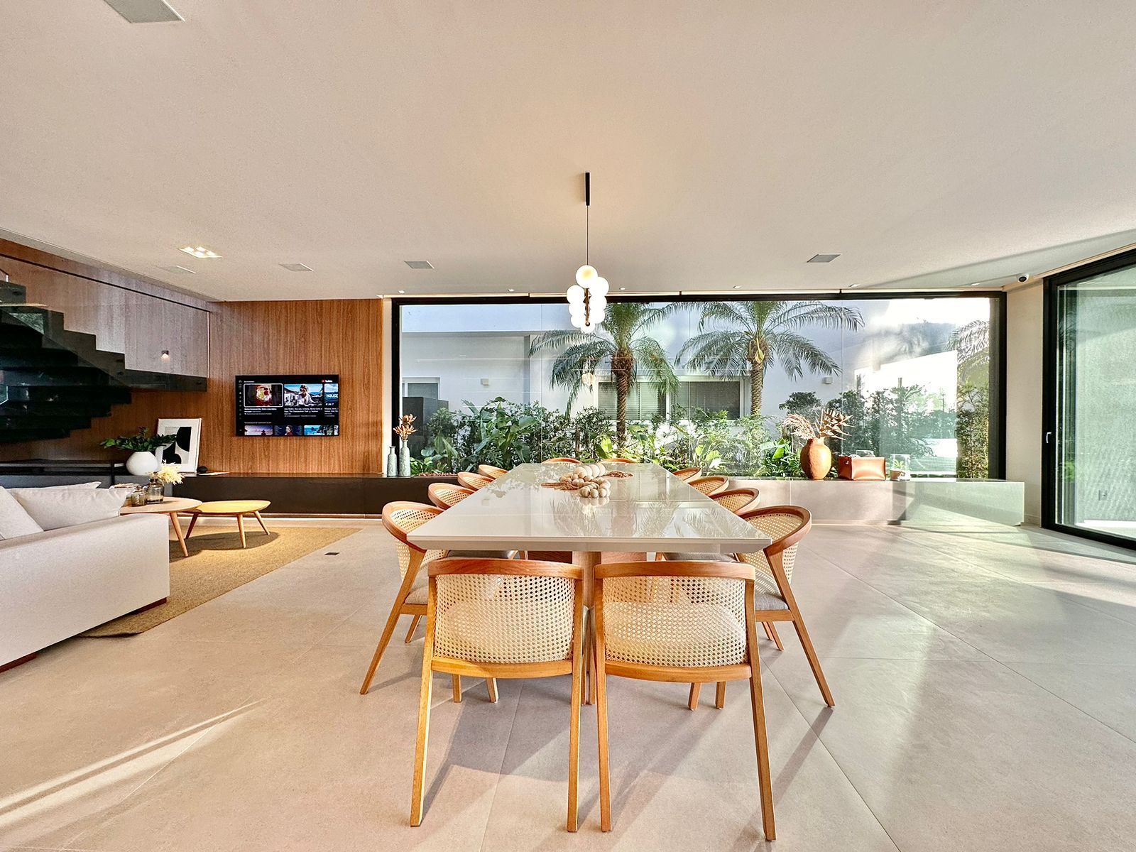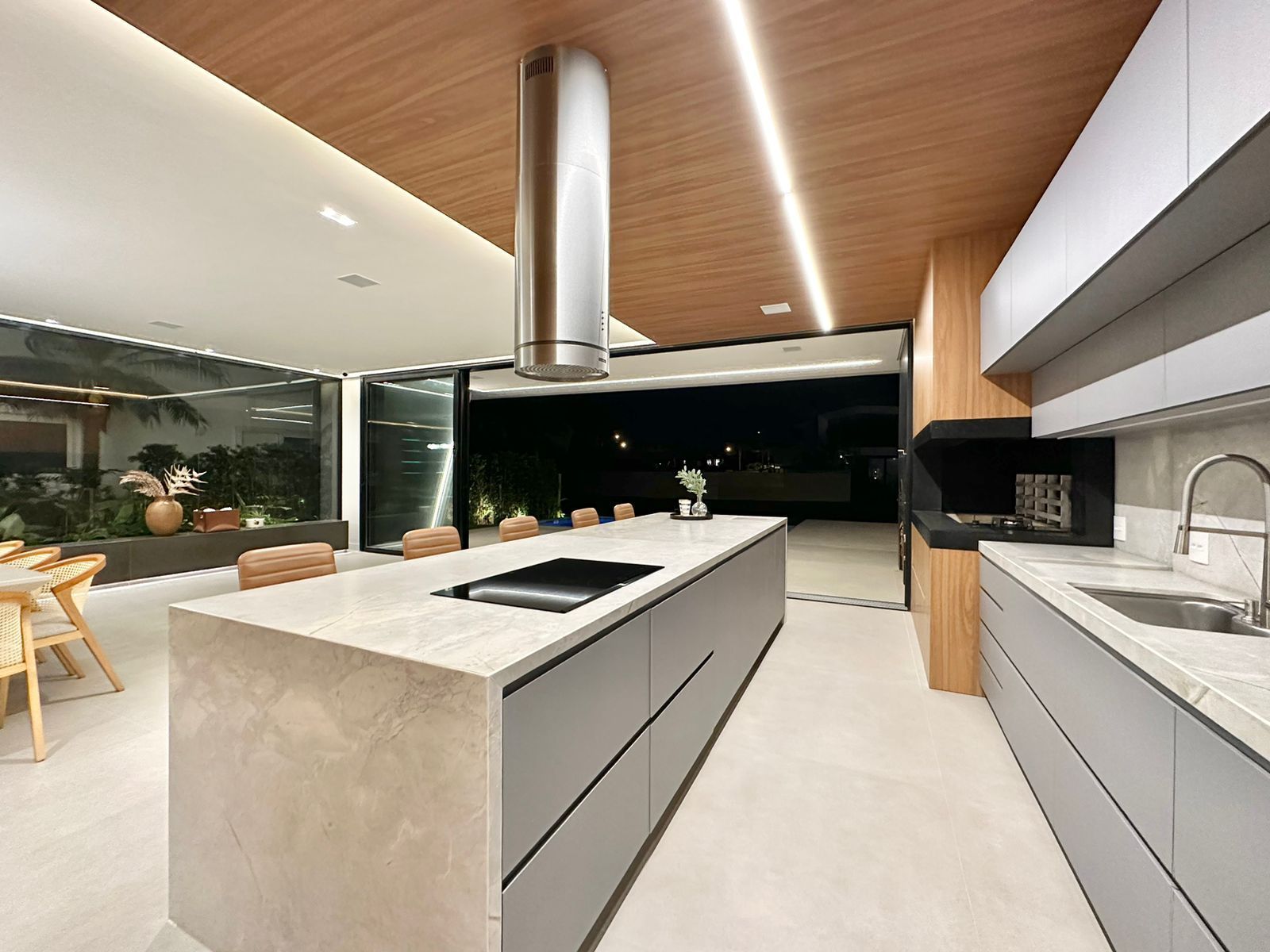 SOBRADO À VENDA BEIRA LAGO ——— Sobrado com 467 M² Lote com M² 06 Suítes sendo 01 térrea Lavabo Beira Lago Piscina de concreto Deck junto ao lago Automatizado Mobiliado Muita Iluminação natural Lareira Churrasqueira Living integrado Aberturas em PVC Piso Aquecido nos Banheiros
