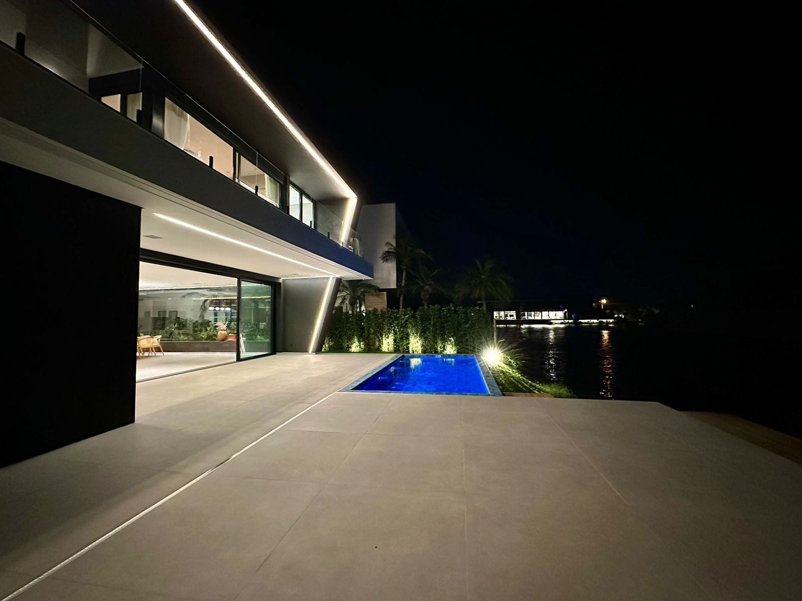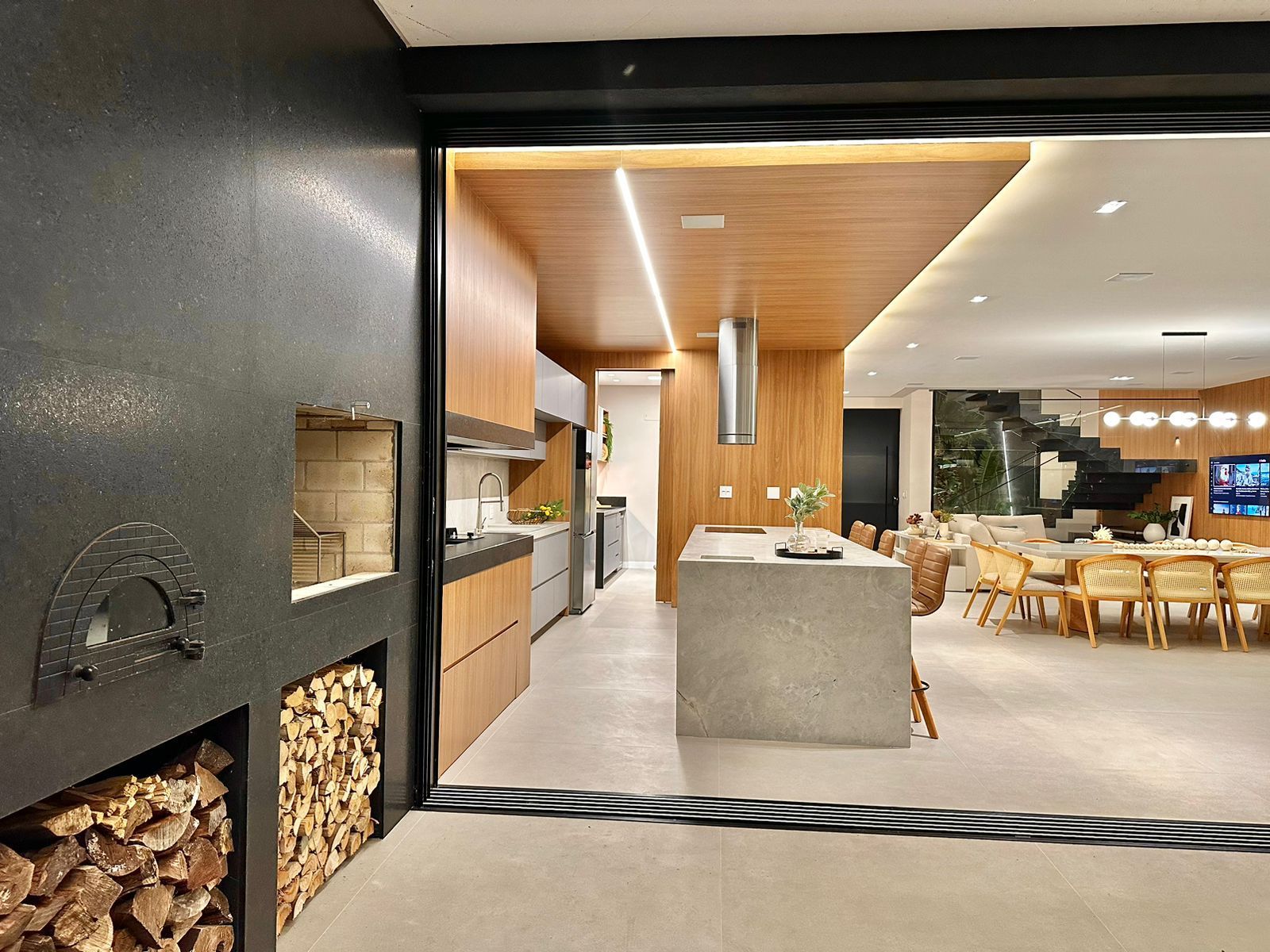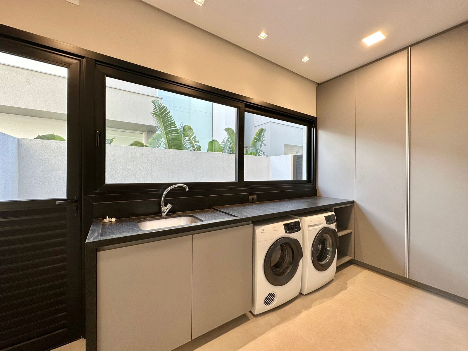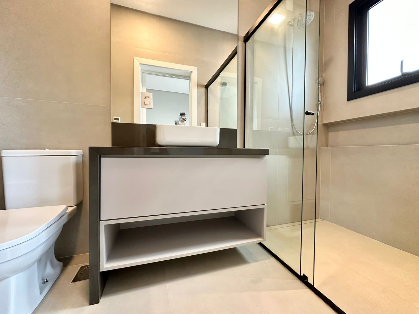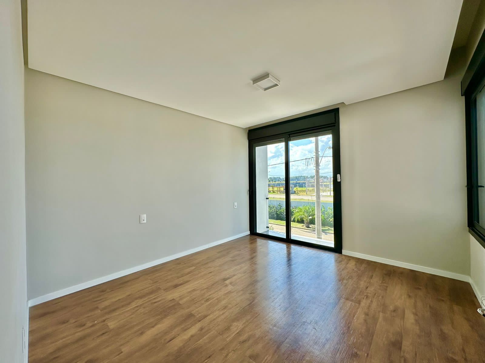 SOBRADO À VENDA BEIRA LAGO ——— Sobrado com 467 M² Lote com M² 06 Suítes sendo 01 térrea Lavabo Beira Lago Piscina de concreto Deck junto ao lago Automatizado Mobiliado Muita Iluminação natural Lareira Churrasqueira Living integrado Aberturas em PVC Piso Aquecido nos Banheiros