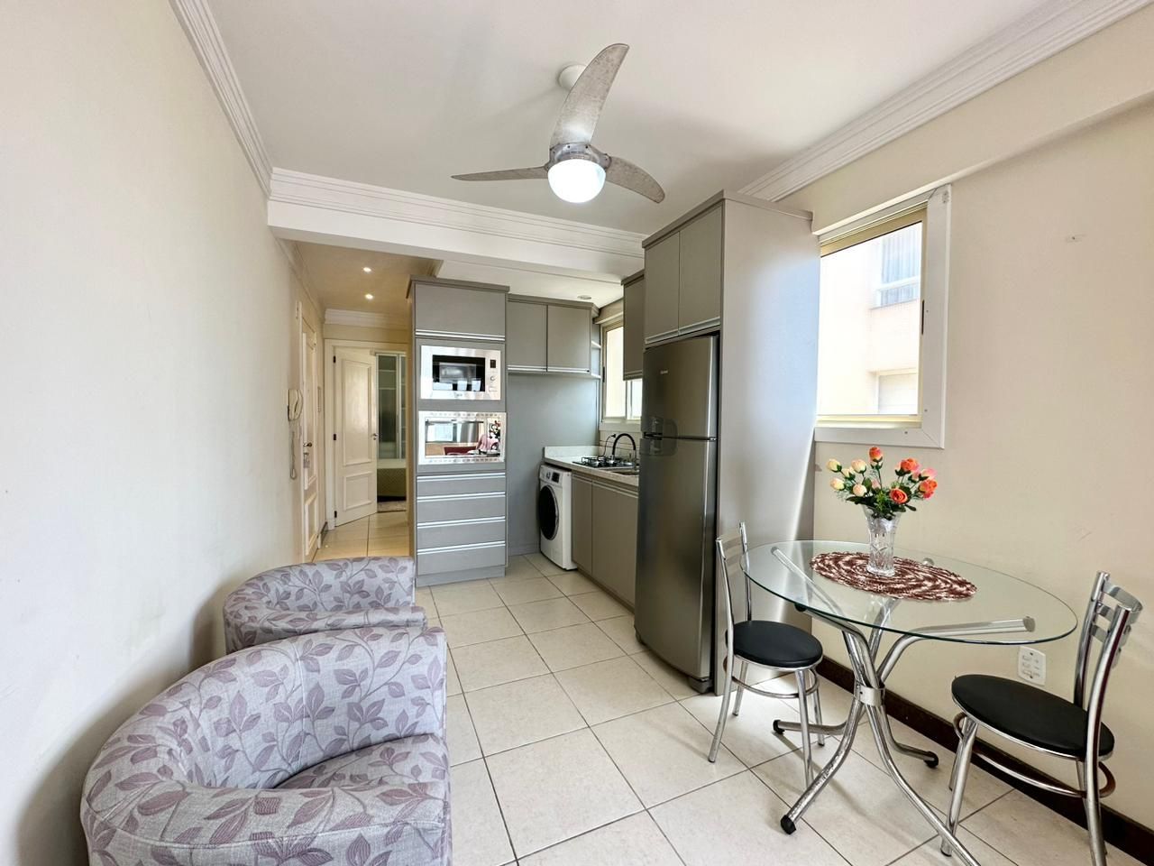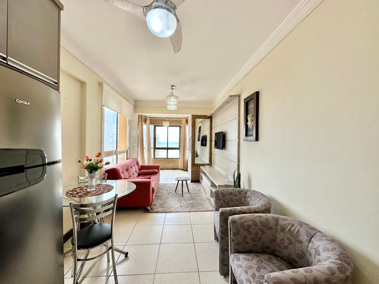 APARTAMENTO DE FRENTE VISTA PARA O MAR ——————————————?01 Dormitório?Banho social?Cozinha americana?Sacada com Churrasqueira?Mobiliado?60, 97 M² área?Box