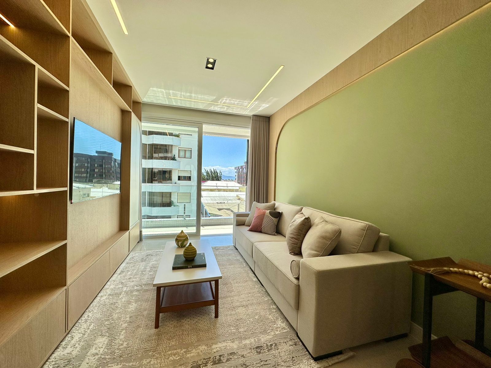 APARTAMENTO COM VARANDA FINAMENTE DECORADO?2 Dormitórios, sendo 1 Suíte?01 Banho Social?Varanda Ampla na Sala?Varanda no Quarto?Vista para Área Social do Prédio?Área de Serviço Espaçosa?Cozinha planejada?Churrasqueira?Finamente Mobiliado e Decorado?Splits em Todos os Ambientes?Área Total com Box: 116, 49 m²?Box no Mesmo Andar?Ambientes Integrados?Faz parte da Faixa Decorativa do Prédio?Box no Mesmo Andar?Esquadrias em PVC com Persianas Automatizadas?Prédio Novo - Apartamento Nunca Habitado
