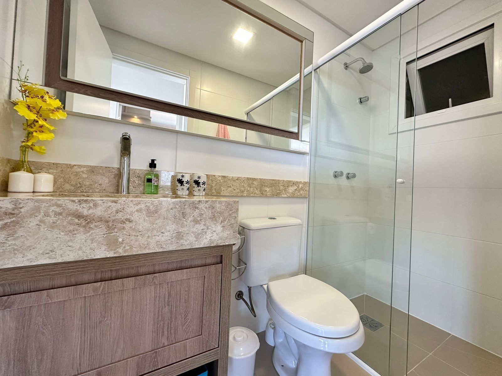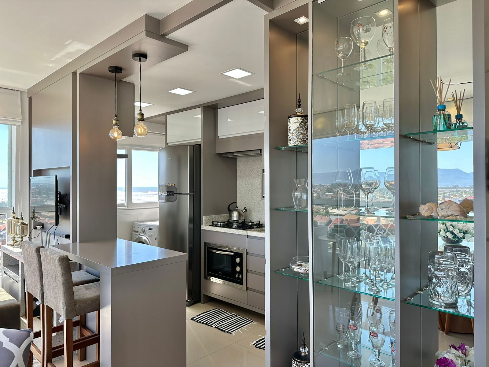APARTAMENTO COM VISTA PARA O MAR À VENDA ——————————————?3 dormitórios, sendo 1 suíte?Banho social?Vista serra e mar?Splits instalados?Junker instalado? Mobília completa (sob medidas)?93 M² area total?1 box duplo de estacionamento. —————————————— 50% de entrada e prazo direto de 36x (corrigidos pelo INCC). Estuda propostas.