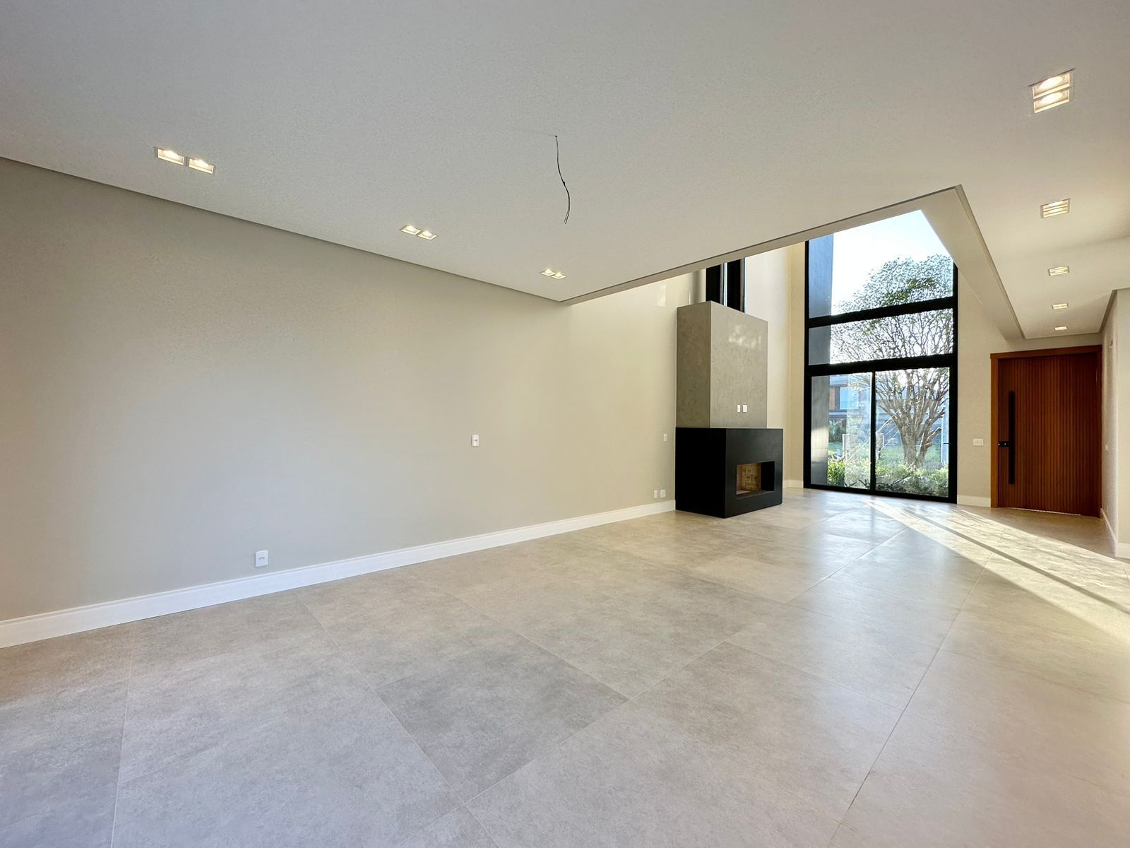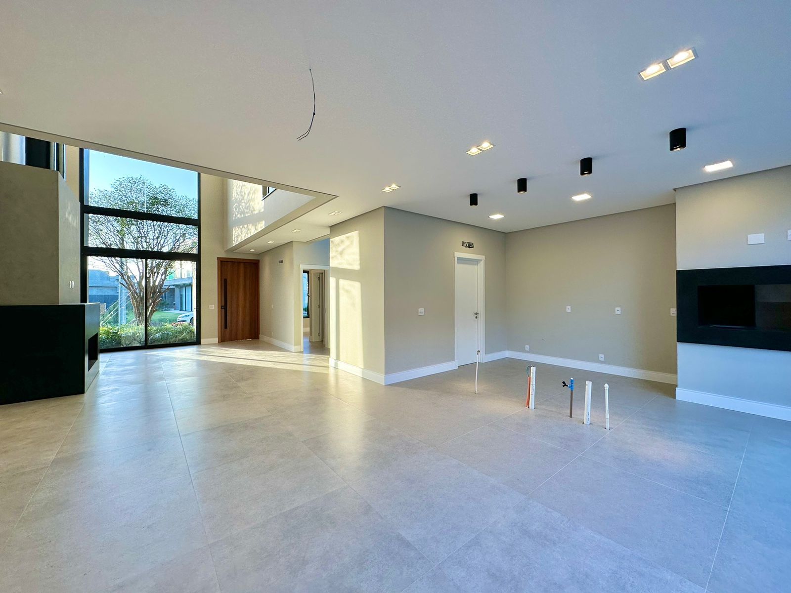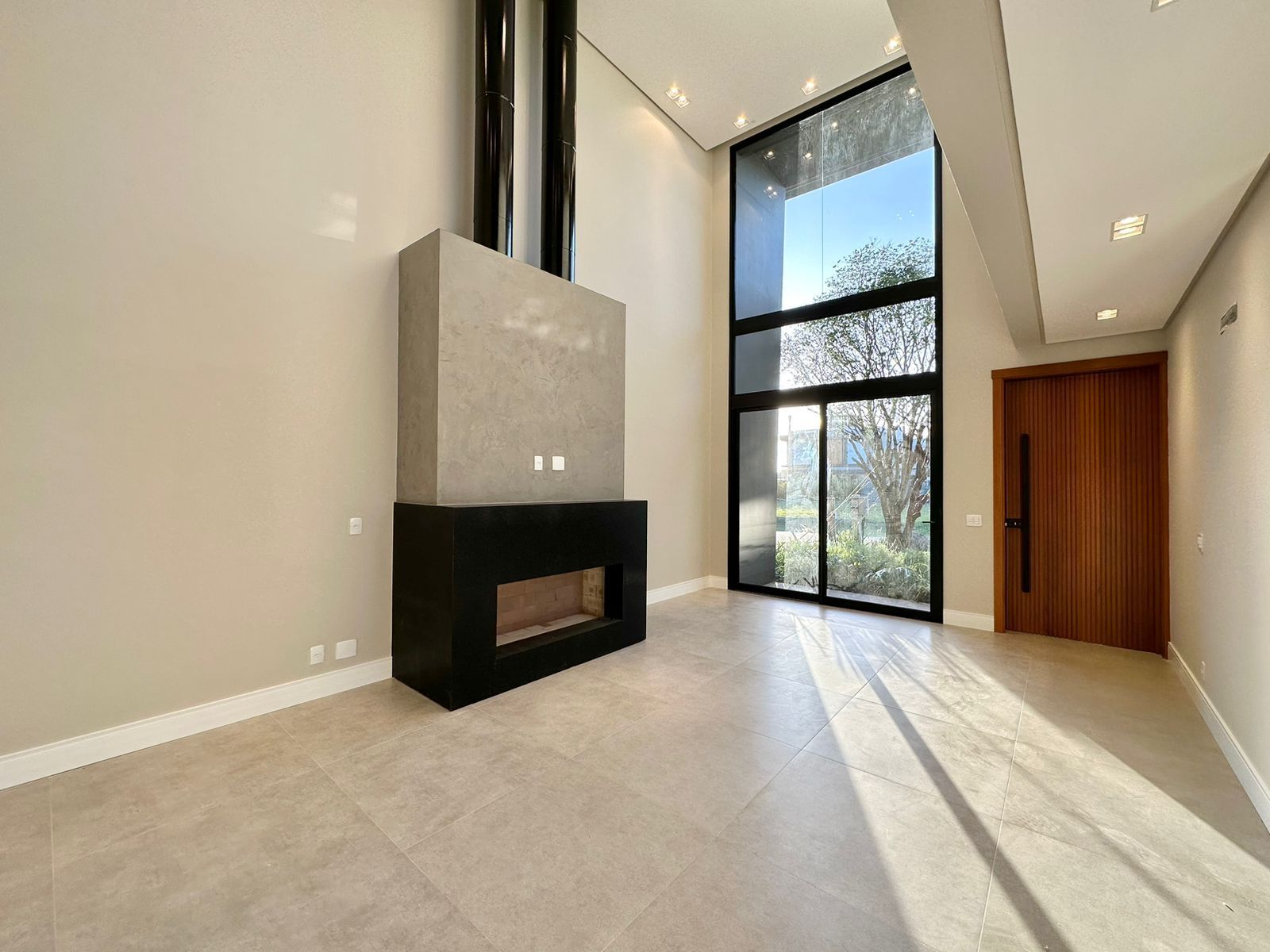 SOBRADO À VENDA! CONDOMÍNIO ——— Sobrado com 260 M² Lote com 260 M² 04 Suítes ( 01 térrea ) Lavabo Paisagismo Living integrado Aberturas Externas em Alumínio preto Persianas automatizadas Lareira Pé direito duplo Nova, nunca usada