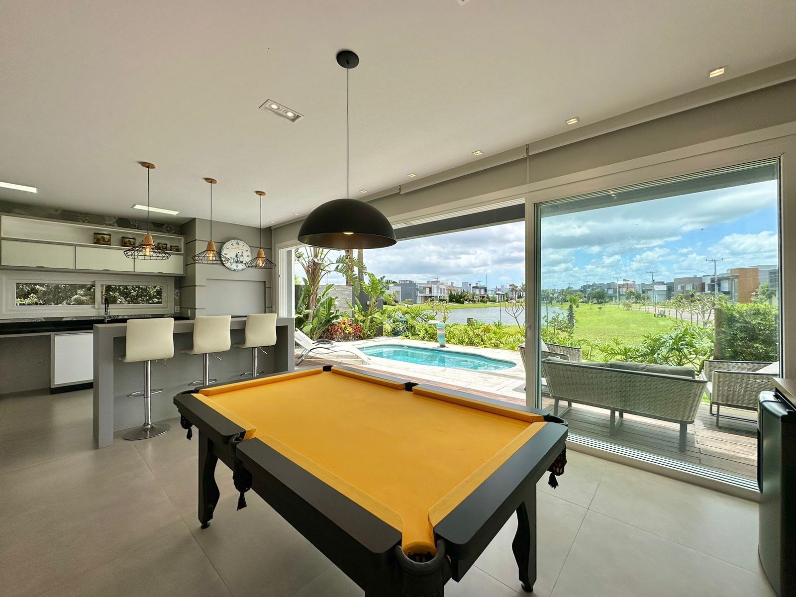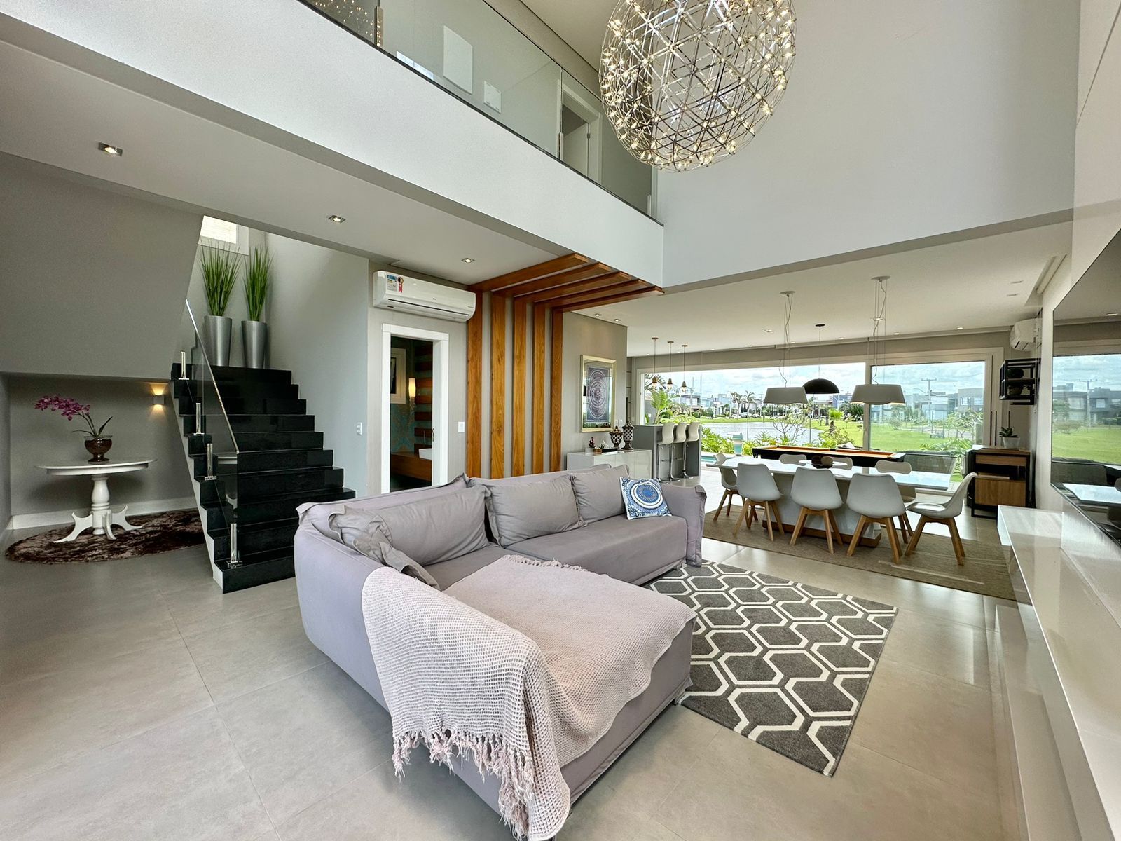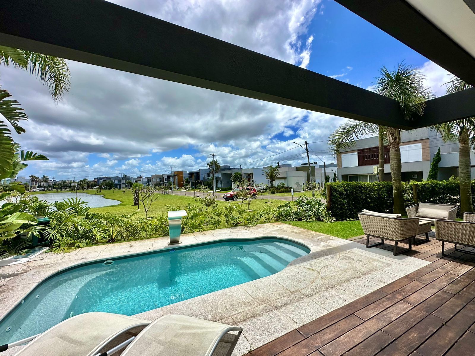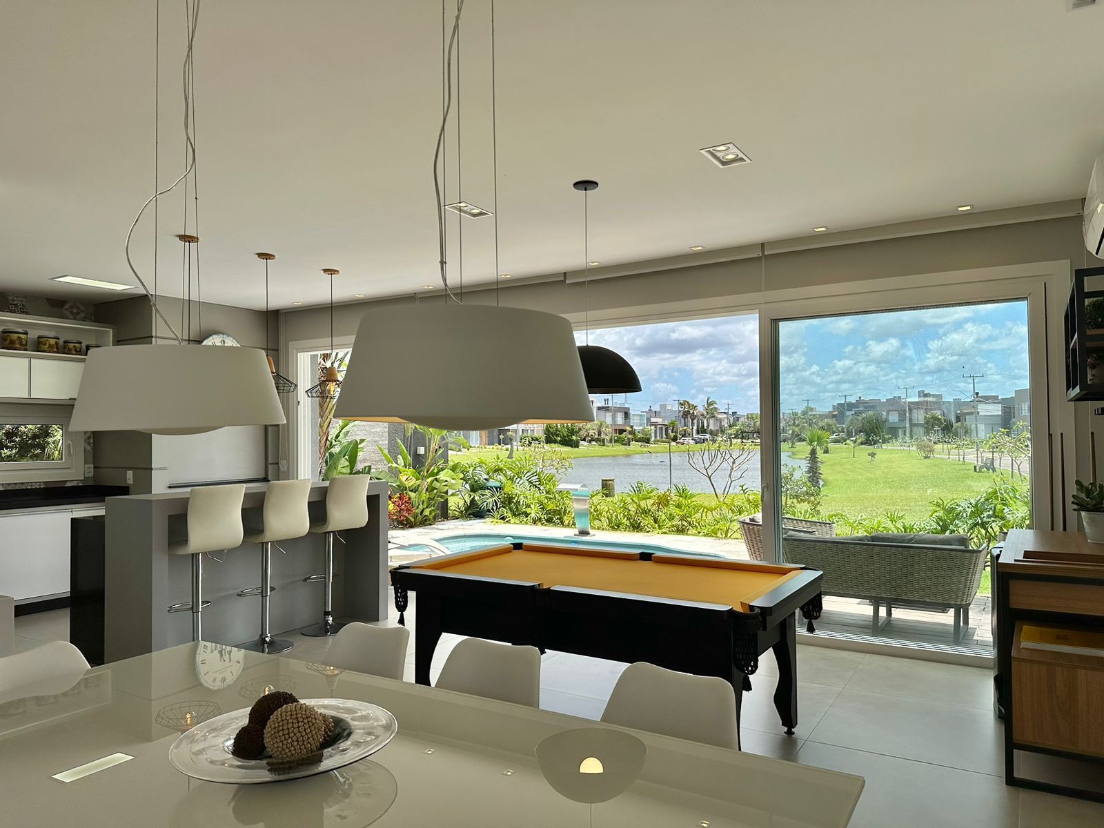 CONDOMÍNIO LAS PALMAS SOBRADO DE ESQUINA A VENDA! ------ Sobrado com 250 M² 05 Suítes Lavabo Ambientes integrados Beira lago Piscina Mobiliado Decorado Fachada imponente Pé Direito duplo Esquadrias em PVC com persianas automatizadas Condomínio com infraestrutura completa Paradouro a beira mar