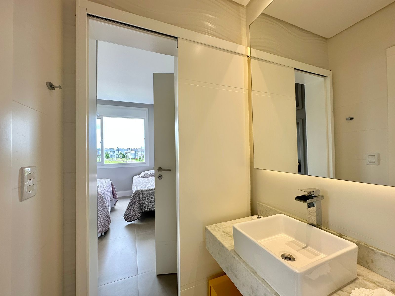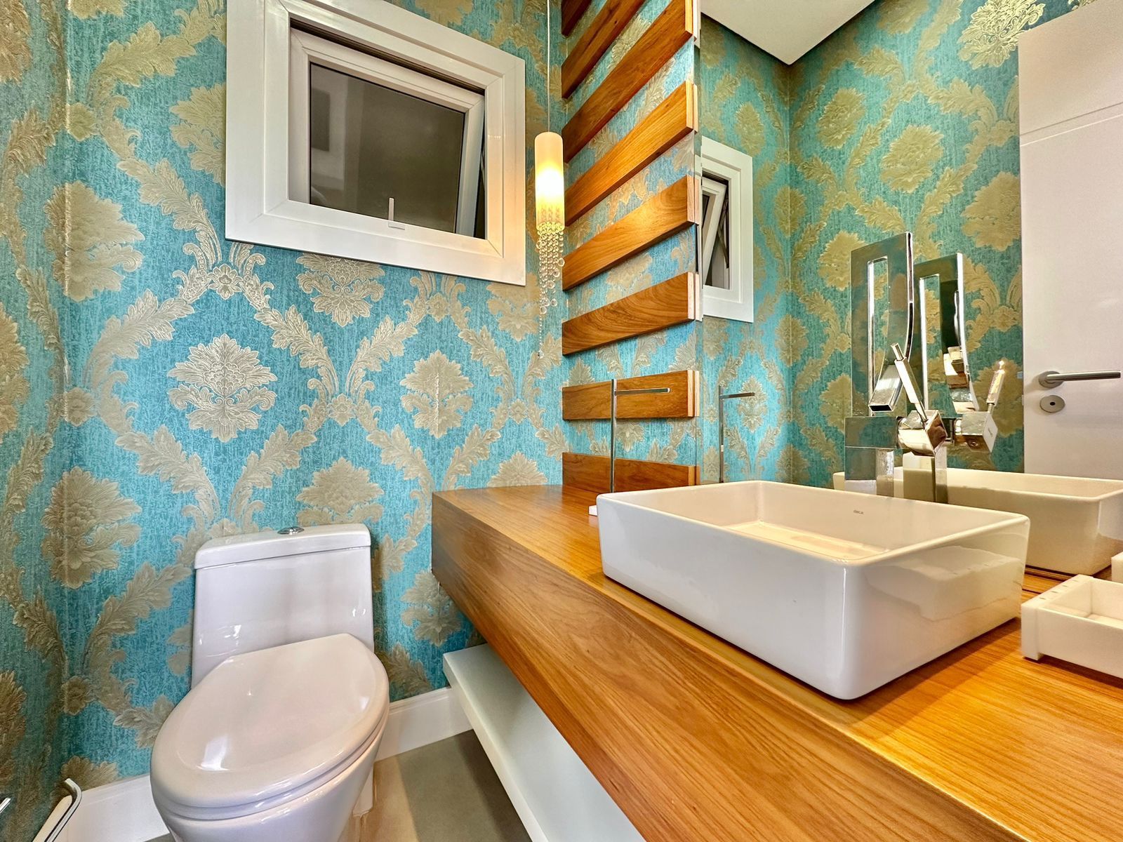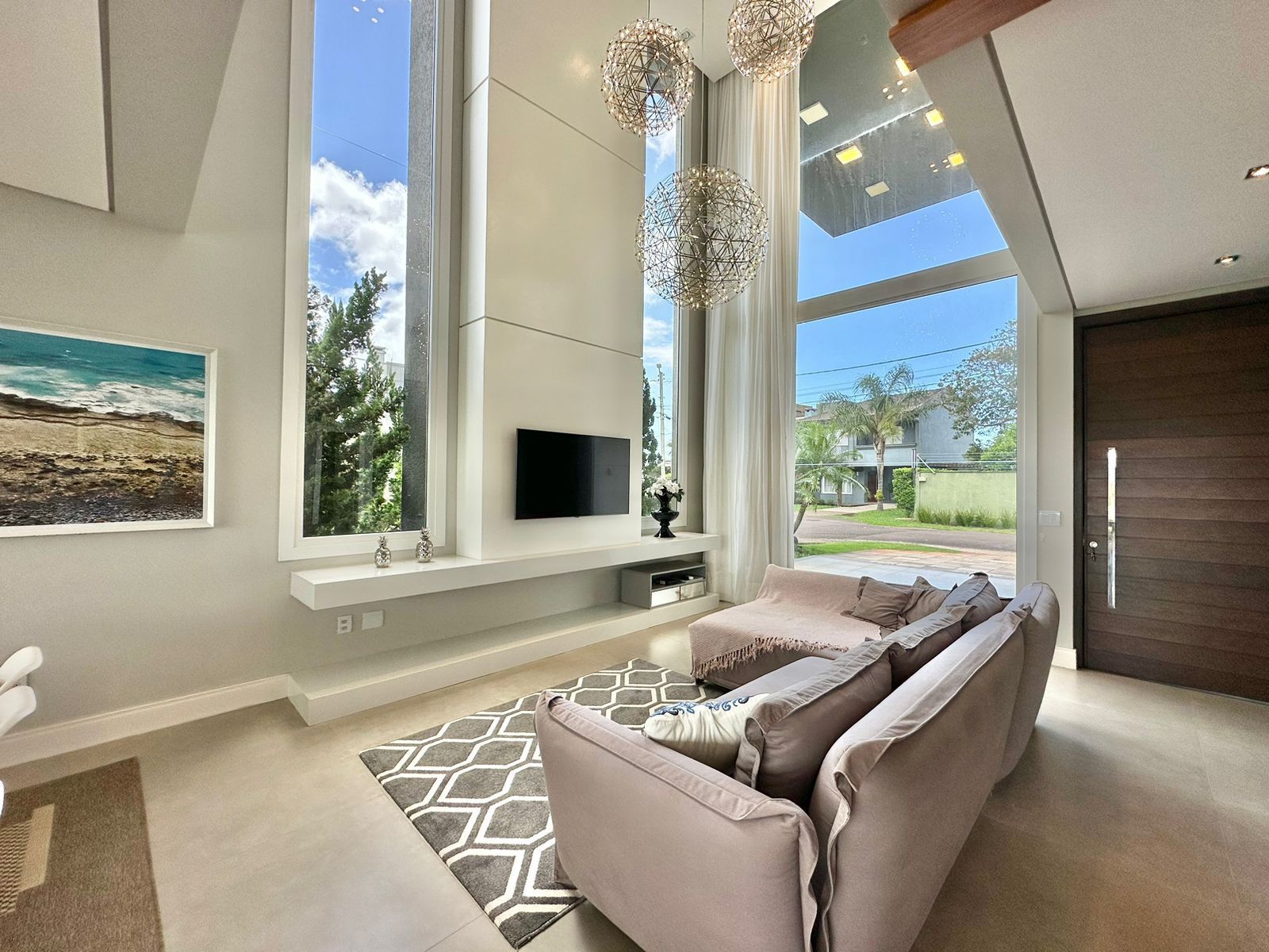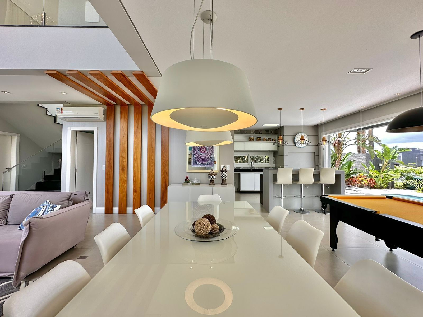 CONDOMÍNIO LAS PALMAS SOBRADO DE ESQUINA A VENDA! ------ Sobrado com 250 M² 05 Suítes Lavabo Ambientes integrados Beira lago Piscina Mobiliado Decorado Fachada imponente Pé Direito duplo Esquadrias em PVC com persianas automatizadas Condomínio com infraestrutura completa Paradouro a beira mar